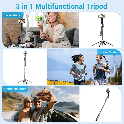 Cet appareil 3-en-1 combine les fonctionnalités d'une perche à selfie extensible, d'un trépied stable et d'une nacelle (gimbal) intelligente. Sa caractéristique principale est la technologie de suivi du visage par intelligence artificielle (IA) à 360°, qui détecte et suit automatiquement le sujet en mouvement, le maintenant parfaitement cadré pendant l'enregistrement de vidéos ou la prise de photos. Le modèle est souvent disponible avec une ou deux lumières LED détachables pour un éclairage optimal.