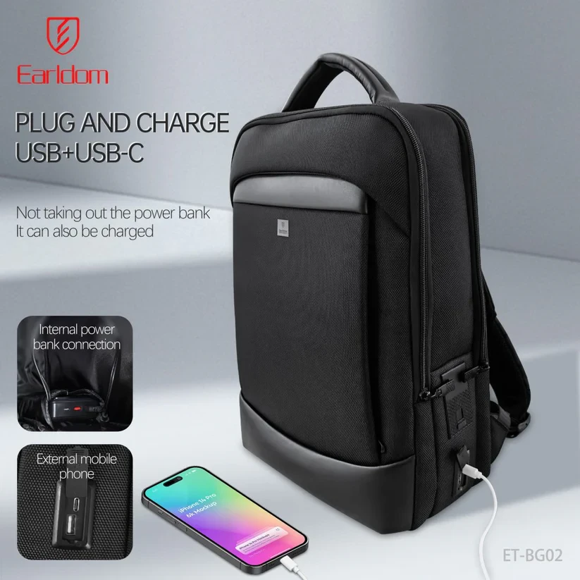 L'Earldom ET-BG02 est un sac à dos d'affaires "intelligent" conçu pour les professionnels et les voyageurs modernes. Sa caractéristique principale est l'intégration d'un verrouillage par empreinte digitale haute sécurité, permettant de sécuriser le compartiment principal contre le vol. Fabriqué en tissu Oxford haute densité, il offre un look sobre et professionnel tout en étant extrêmement résistant aux intempéries.